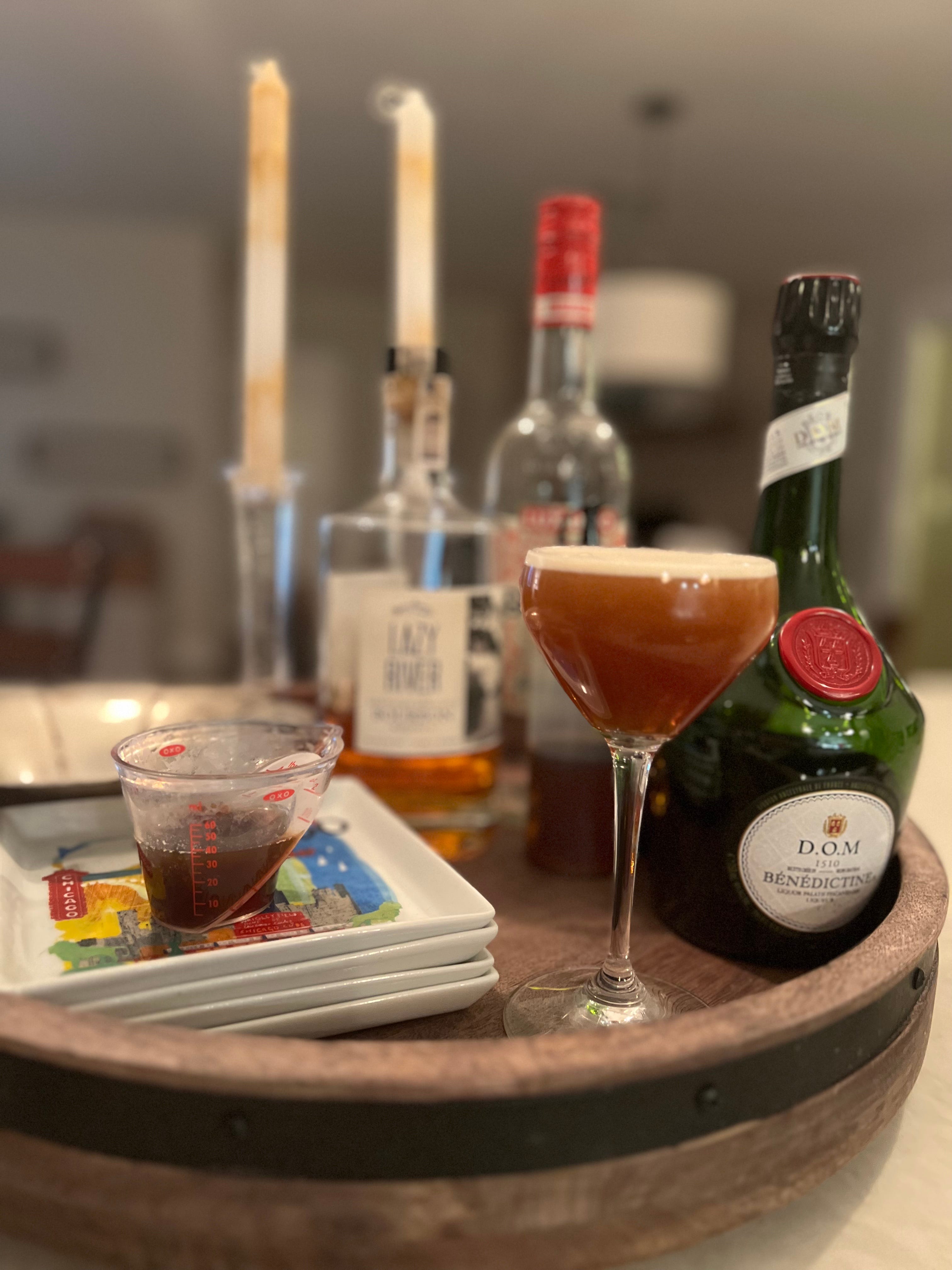 But even though the recipe is a secret, the gist is that this liqueur is an interesting mix of herb and spice that I don’t find in many bottles. That spicy aspect is what this cocktail relies on, and I believe it comes primarily from clove and nutmeg in the distillate. And since those are the spices that (along with cinnamon) tend to make “pumpkin spice” Benedictine always tastes fall-y to me.