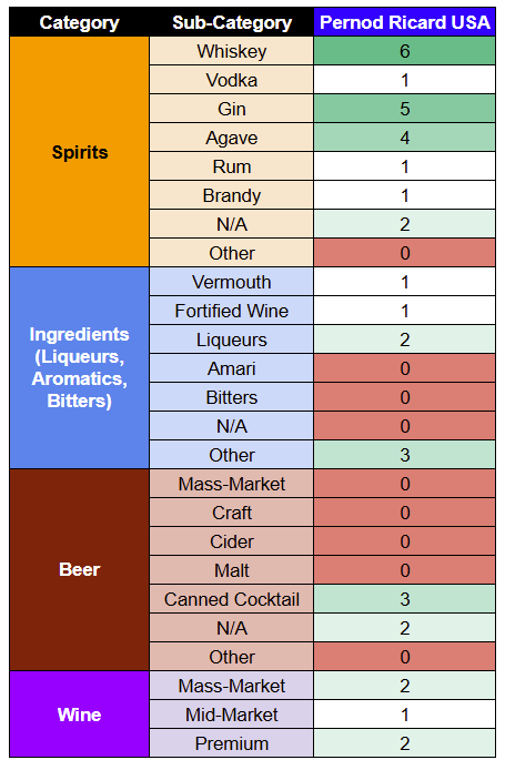 If Pernod Ricard sees itself as a true brand builder, then brand count in every intersection is going to be the best way to assess their relative strength.