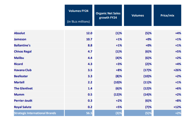 So really, this is a story of Absolut, Jameson, and Ballentine’s. Those 3 brands make up nearly a quarter of all sales for the full portfolio of more than 240! There’s top-heavy, and then there’s this…