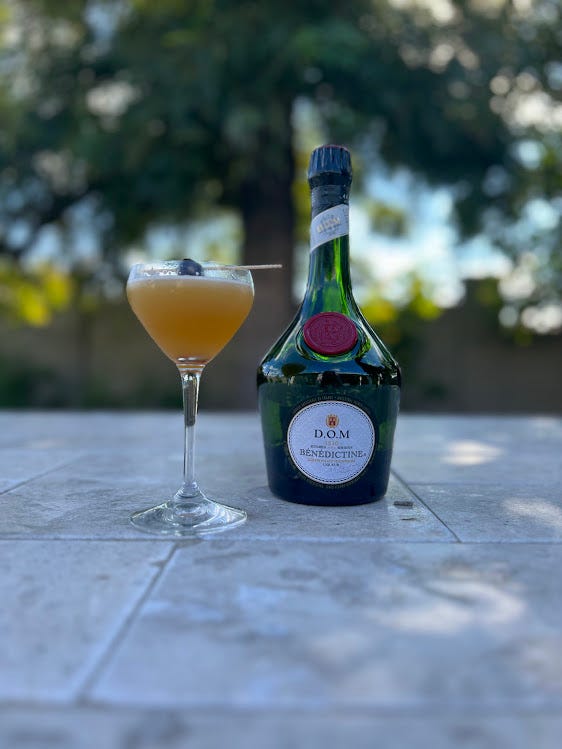 This is very simple, but it’s certainly not a recipe I’ve encountered before so it sure seems to fit the prompt. I like the idea - adding in Benedictine to a standard sour recipe and avoiding any protein addition should certainly highlight the herbs and spices in the liqueur. I worry a bit that it might be both a bit too sweet and too sour at this ratio, but let’s give it a go!