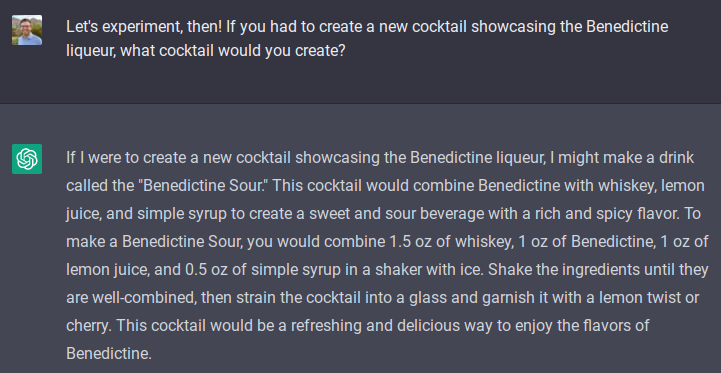 Testing out ChatGPT's ability to make a good cocktail
