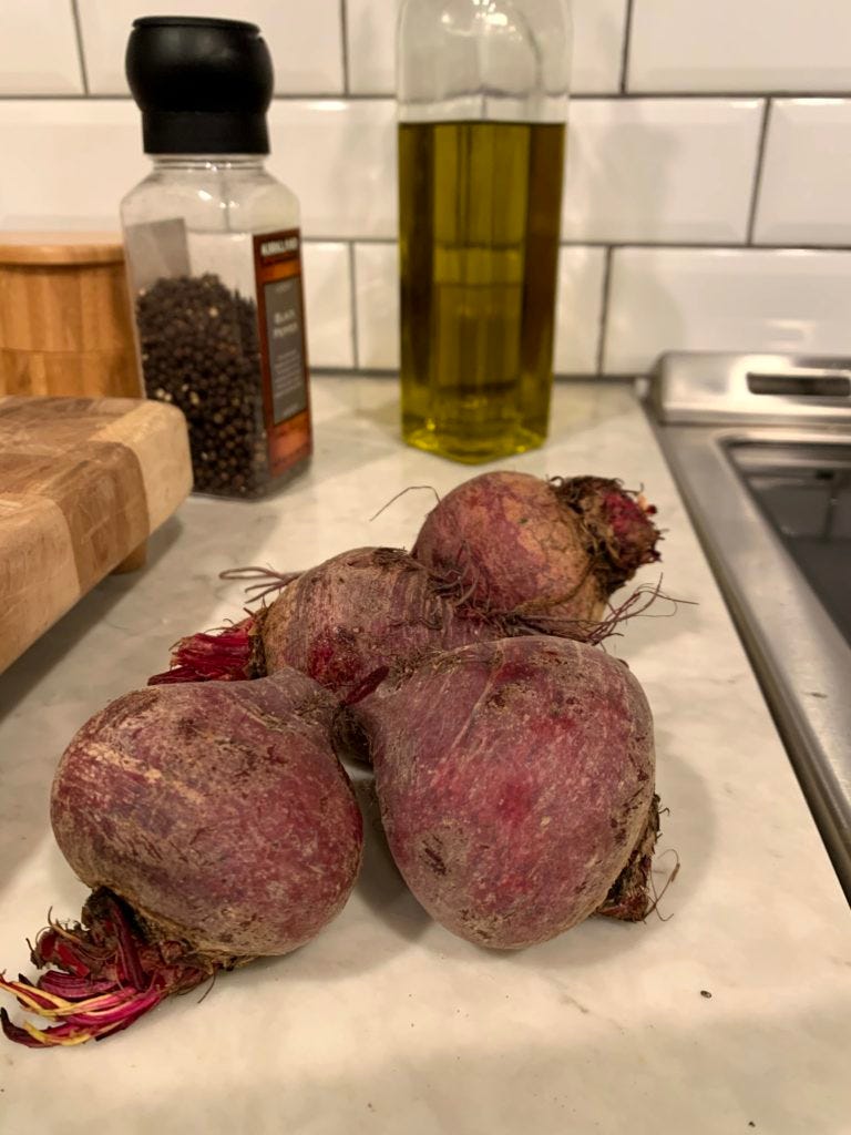 "Everything" isn't an interesting answer to the question of what I don't like about beets, but I've never been able to pinpoint the biggest offender. So while I certainly set out to make a drink that would showcase the premier ingredient, I wanted to be able to drink the result as well. So, I set about building an ingredient list that could all get thrown into a blender together to result in an icy, earthy, funky, beet-red drink that's about as far away from a pińa colada as possible. But first, I had to get the beets ready.