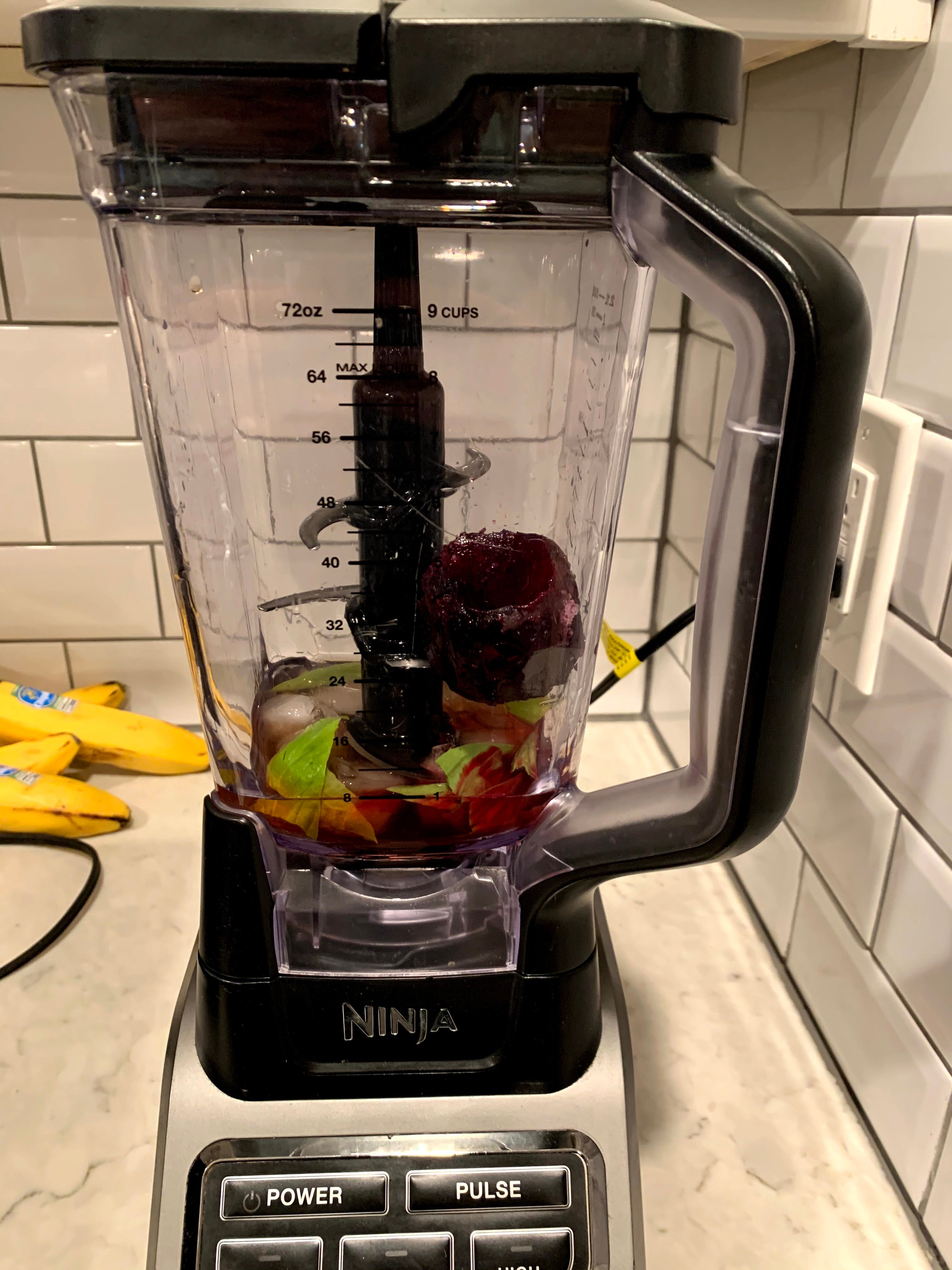 To balance out the earthiness of the beets, I grabbed some fresh basil from the garden. I've always appreciated how the sweetness and aroma of basil brightens anything without overwhelming it. I also threw in a good amount of orange bitters for a bit more brightness and some Peychaud's for some more traditional tiki funk. I threw it all into a blender (exact amounts below) with a little more ice and blended it on low for about a minute to make sure it was all fully mixed.