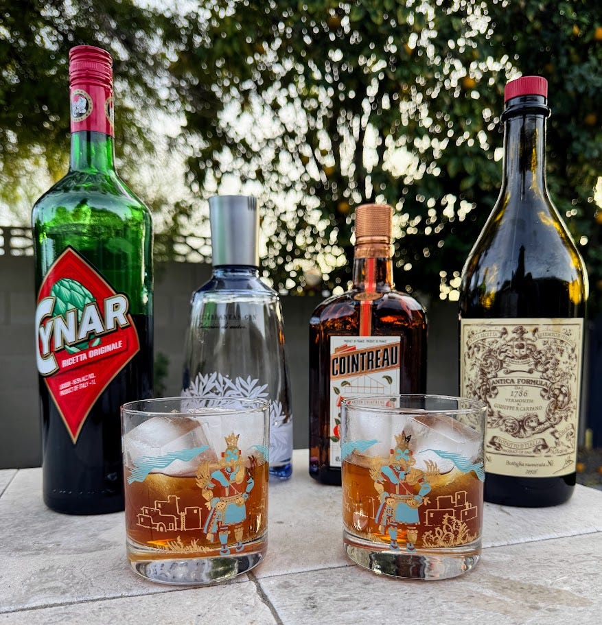 So, instead of Campari as the bitter-and-orange addition, I wanted to split them up. For bitter, I went with Cynar - there’s not nearly as much fruitiness there by comparison. And then, to punch up the orange even more in a different way, I added in Cointreau.