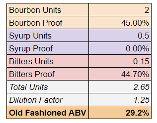 The simple idea is 2 ounces of bourbon, a half ounce of syrup, 4 dashes of bitters, all stirred with ice for a while. You get a drink that’s less than 3 ounces that drinks about as hot as the Martini.