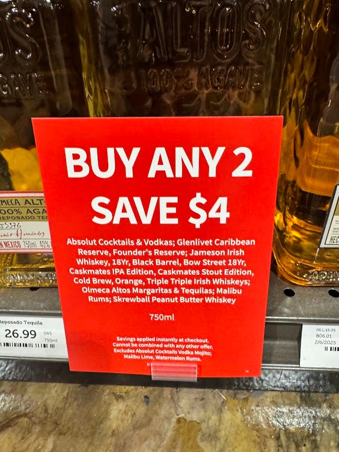 Total Wine decided to help me in this endeavor by prominently displaying this promo across a whole bunch of PR brands (though not all of them), and it was repeated in most categories. So, it was pretty easy to see where the stuff I was looking for actually was.