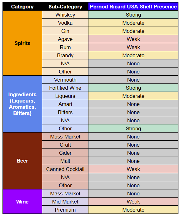 If you walked into a liquor store not knowing that Pernod Ricard was one of the top ~5 companies represented in the store, would you walk out with that impression?