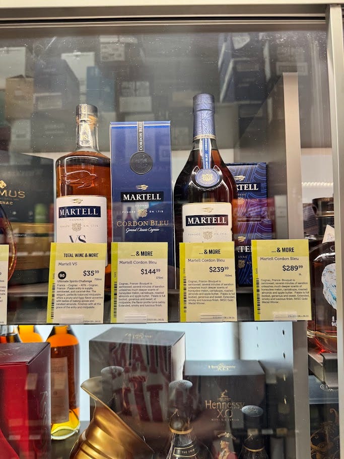 Again, no bottom shelf here! The full Martell brand is behind the glass in a “premium” case (though there’s more expensive stuff than that VS just out there ready to grab…):