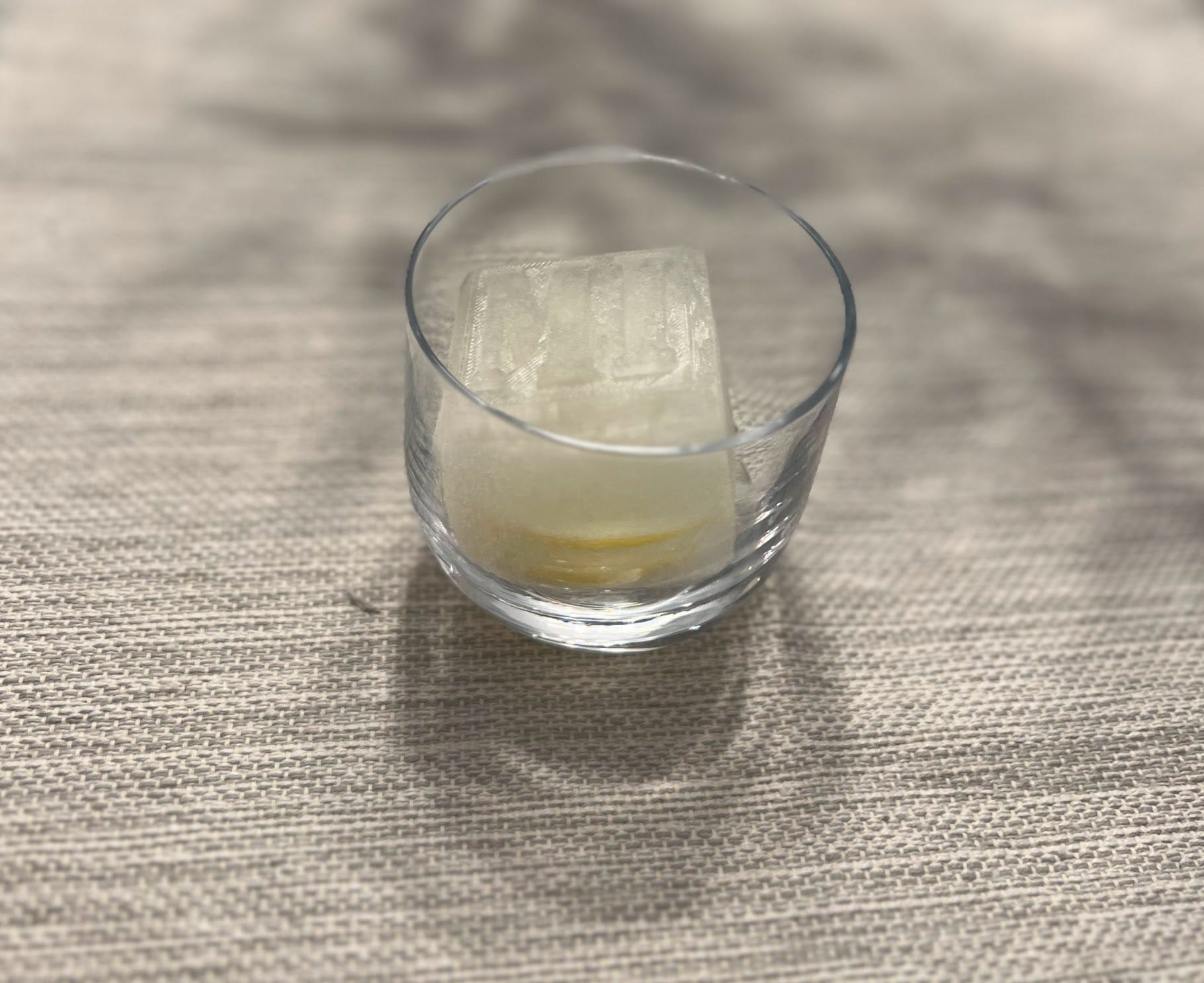 Strain it out over your lemon ice that’s been resting in a rocks glass, and serve! Over about a half hour, the lemon ice will melt dramatically and the drink will be changing consistently over that period. For me, it was best in the 10-20 minute range, so you might want to take a sip and let it sit for a while before you return to it.