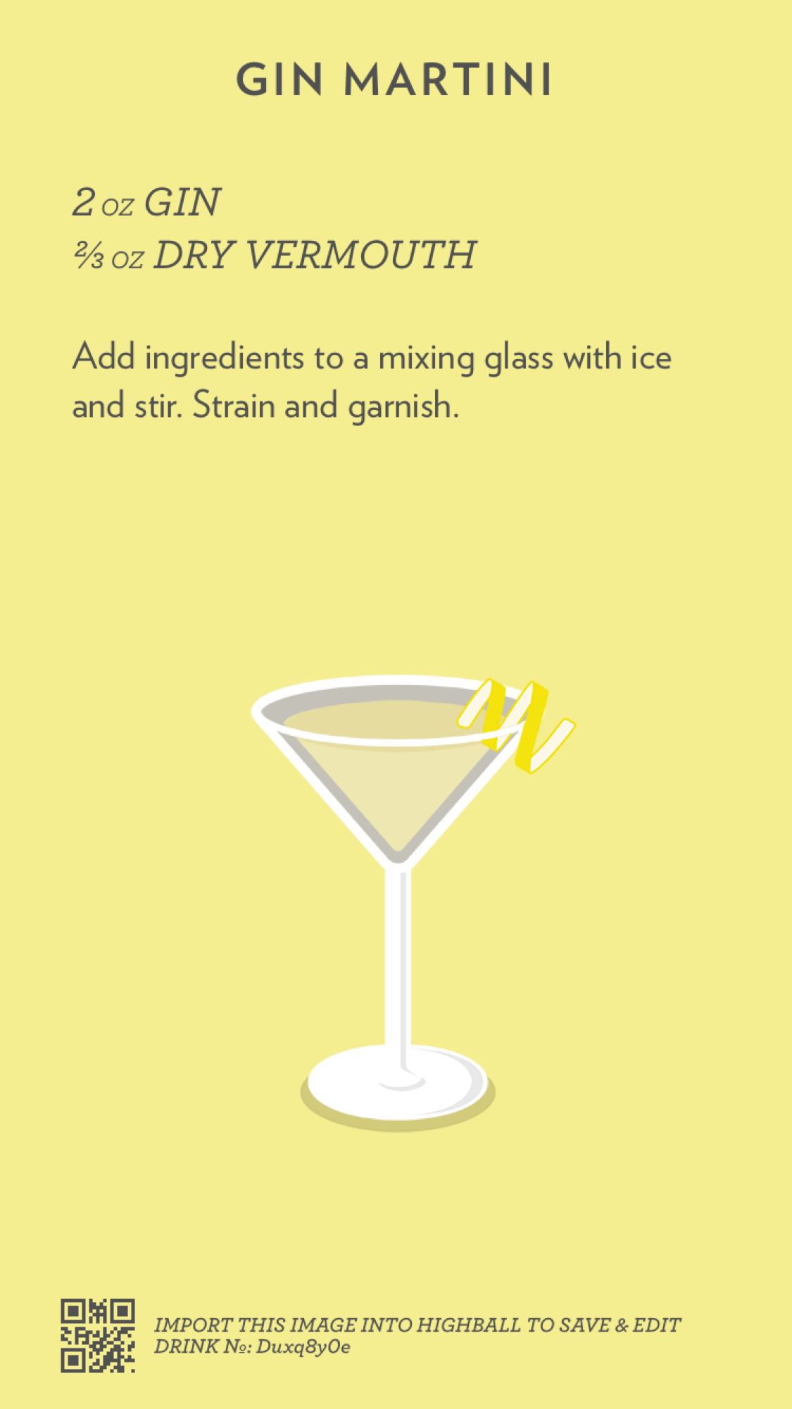Attempted to be made famous by fancy bartenders and instead made famous by James Bond, this is probably the most classic cocktail in existence. There are endless debates about the right ratios to use, the most appropriate garnish, and the best prep method. All have merits, and the best way to do it is the way you like it best.